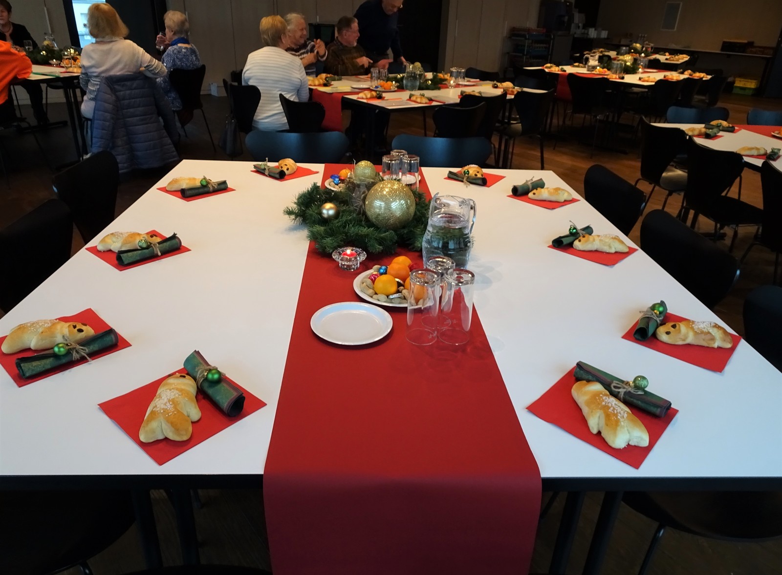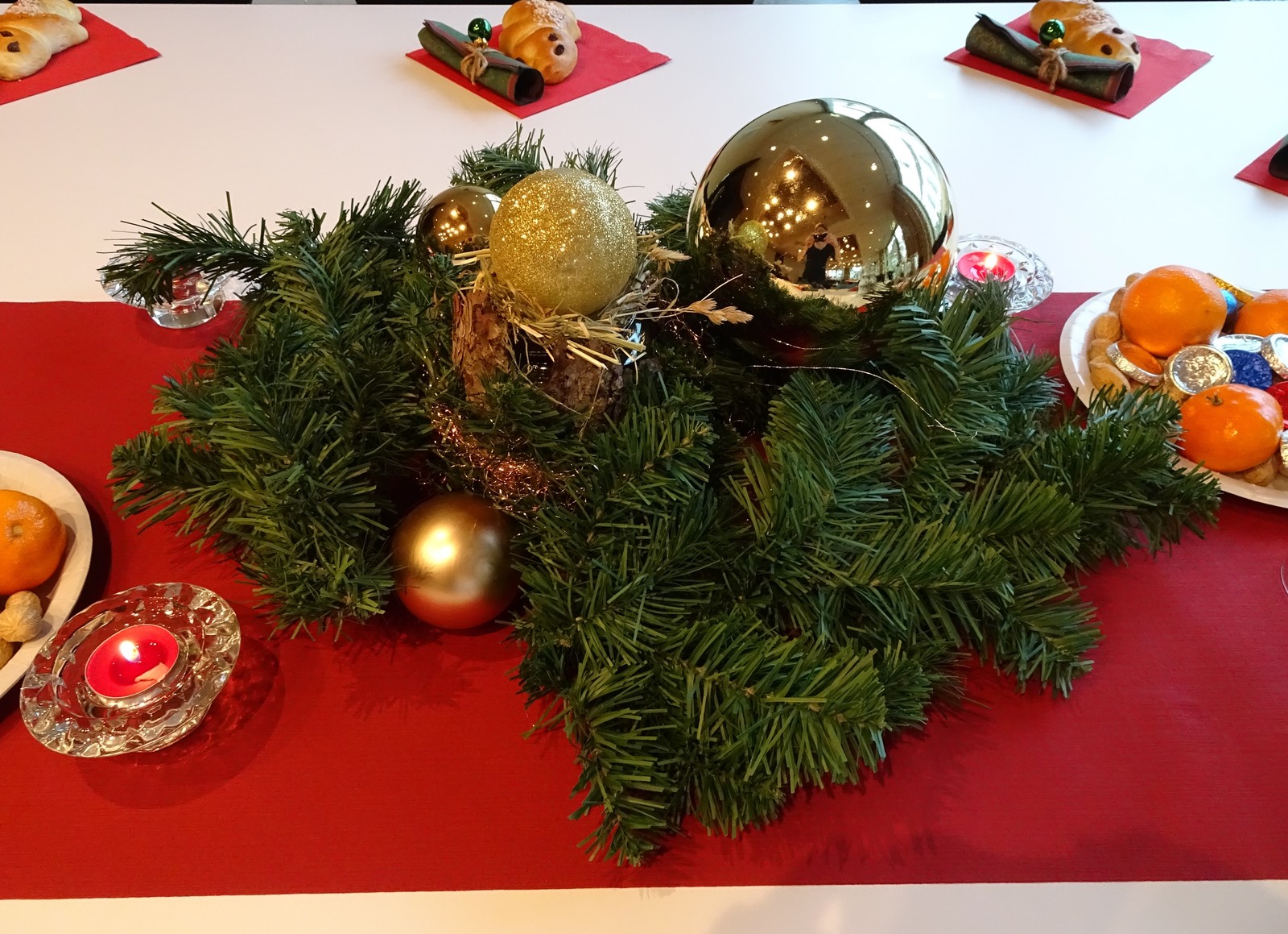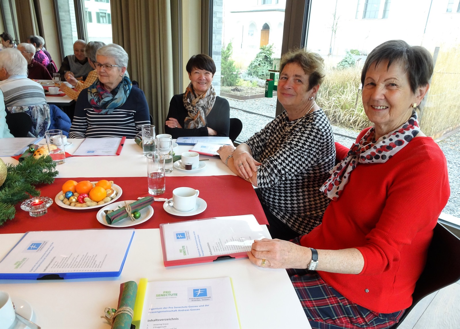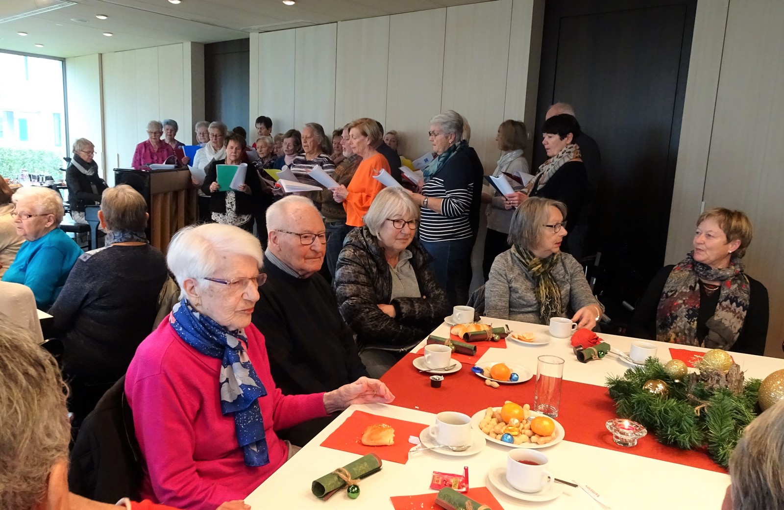 Die dekorierten Tische mit Kerzenschein, Nüssli, Schöggeli, Mandarinen und Grittibänzen strahlten adventliche Stimmung aus. Ebenso die wunderschönen Einlagen der Senior-Singers. Weihnachtslieder, aber auch bekannte, fröhliche Volkslieder wurden vorgetragen und luden die Gäste zum Mitsingen ein. Ein wohltuendes, vorweihnachtliches Zusammensein!