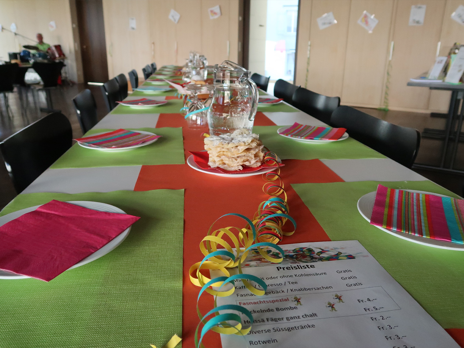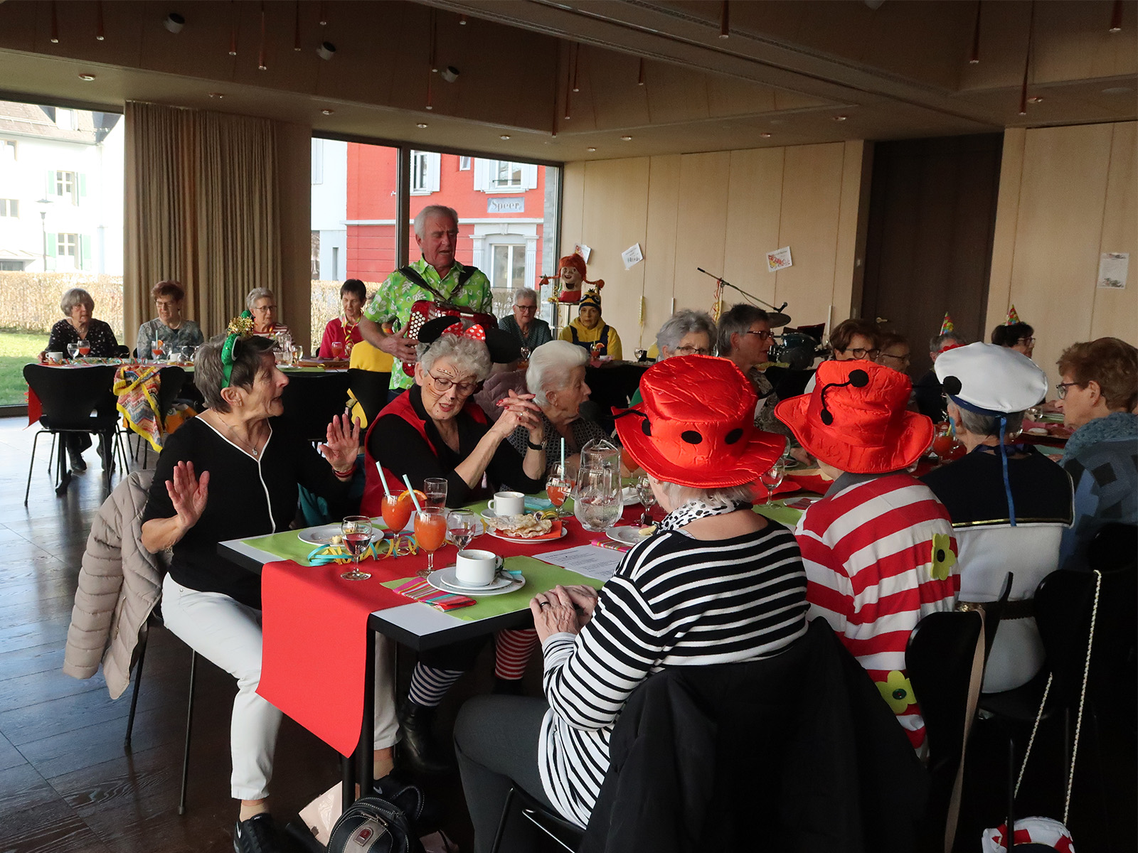 Viele Fasnächtlerinnen sind im dekorierten Andreassaal erschienen. Armin Rutz und die Guggemusik Wyssbach-Geischter Flawil sorgten für die musikalische Unterhaltung und eine fröhliche und ausgelassene Stimmung.