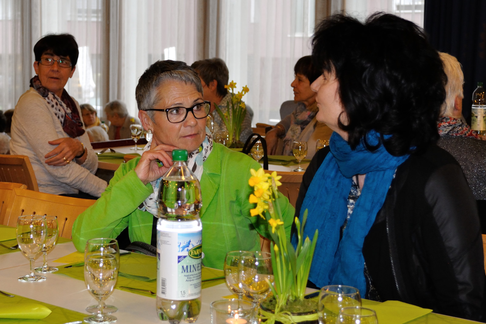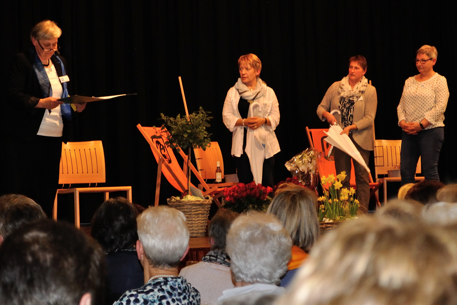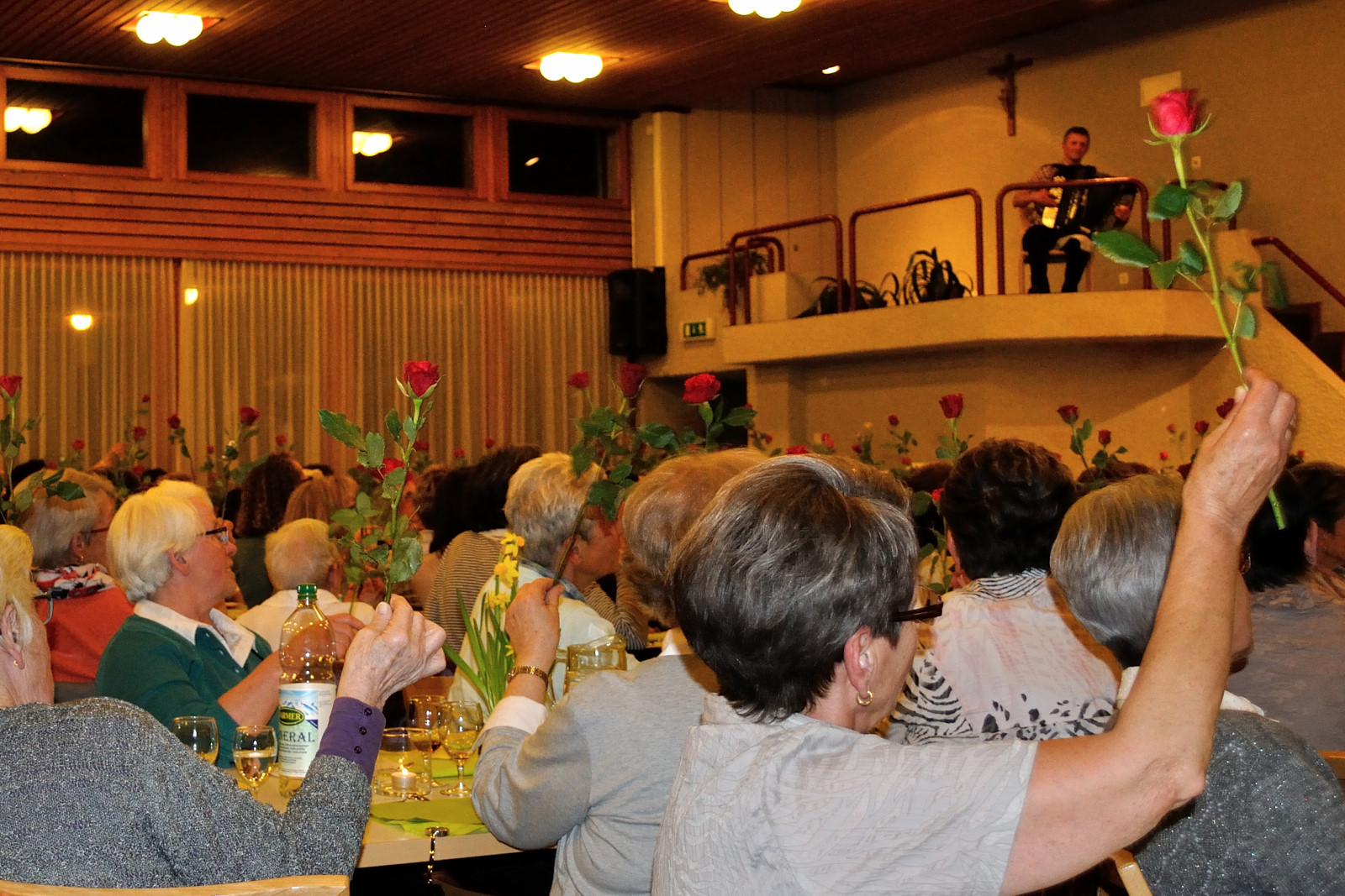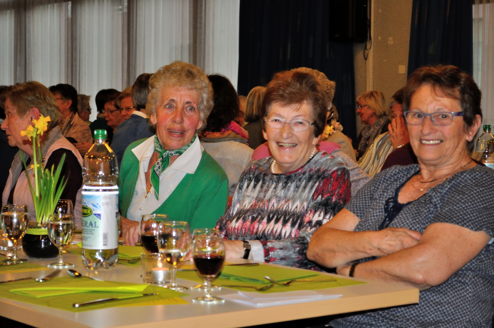 In gewohnt humorvoller Art liess die Präsidentin das Vereinsjahr Revue passieren. Nach 11 Jahren Amtszeit stellte sich die Präsidentin, Esther Schöb, nicht mehr zur Wahl. Sie blickte kurz auf die vergangenen Jahre zurück und bedankte sich bei allen Vorstandskolleginnen und Mitgliedern für die schöne Zeit. Ebenso traten die Vorstandsmitglieder Theresia Trüssel und Vreni Wick nach langjähriger Tätigkeit aus dem Vorstand zurück. Neu wurde wurde Frau Rita Christen als Präsidentin, Frau Yvette Dal Santo (Religion), Daniela Koller (Soziales) sowie Irene Appert (Kultur) gewählt. Die scheidenden Vorstandmitglieder wurden mit viel Schalk und Humor sowie einem Meer von roten Rosen in den Ruhestand verabschiedet.