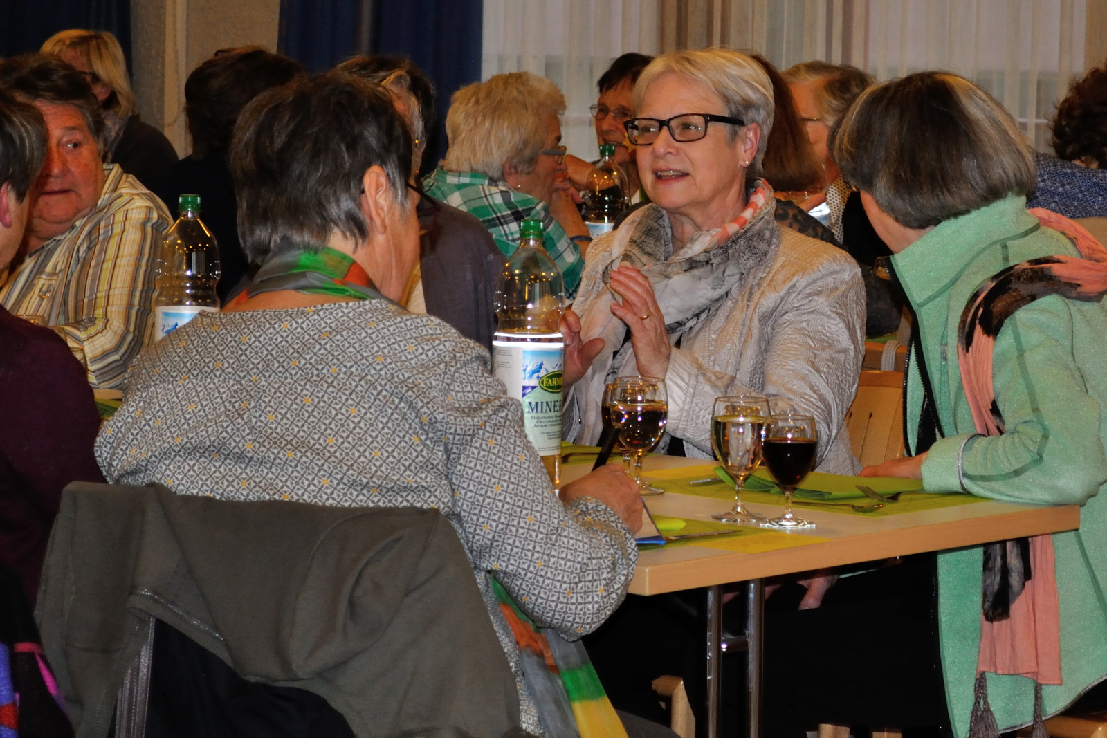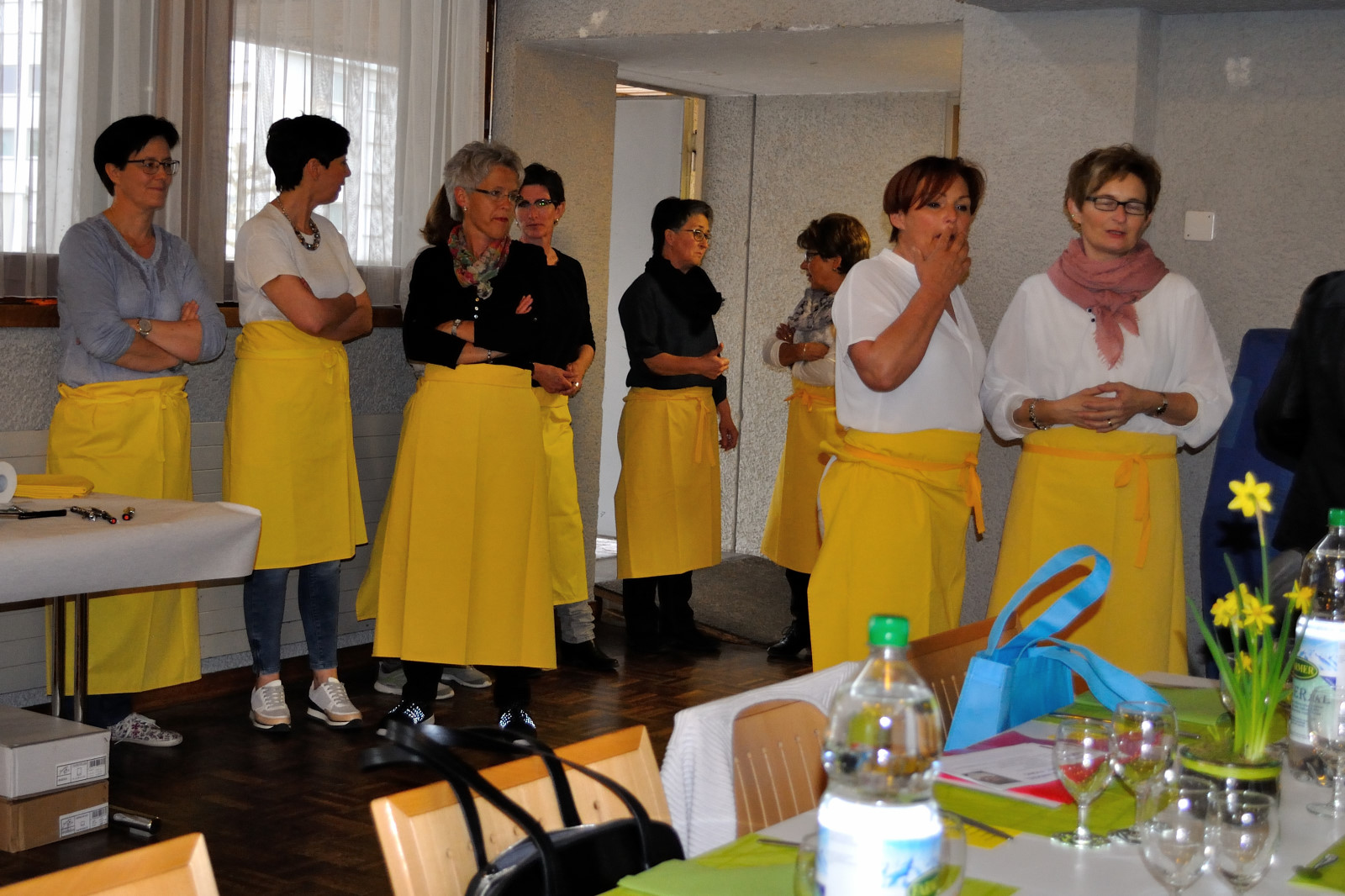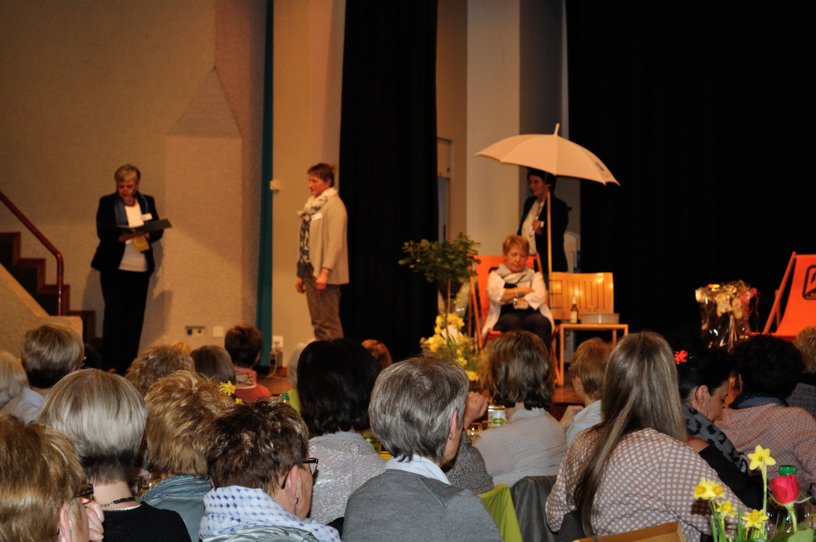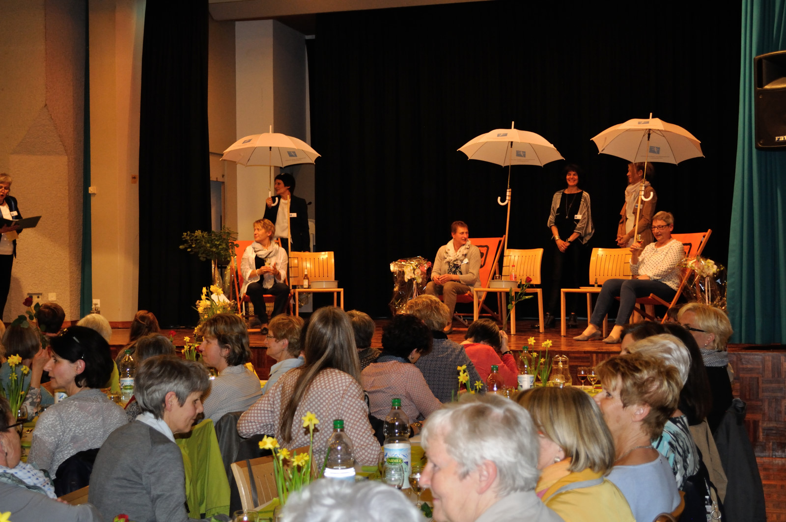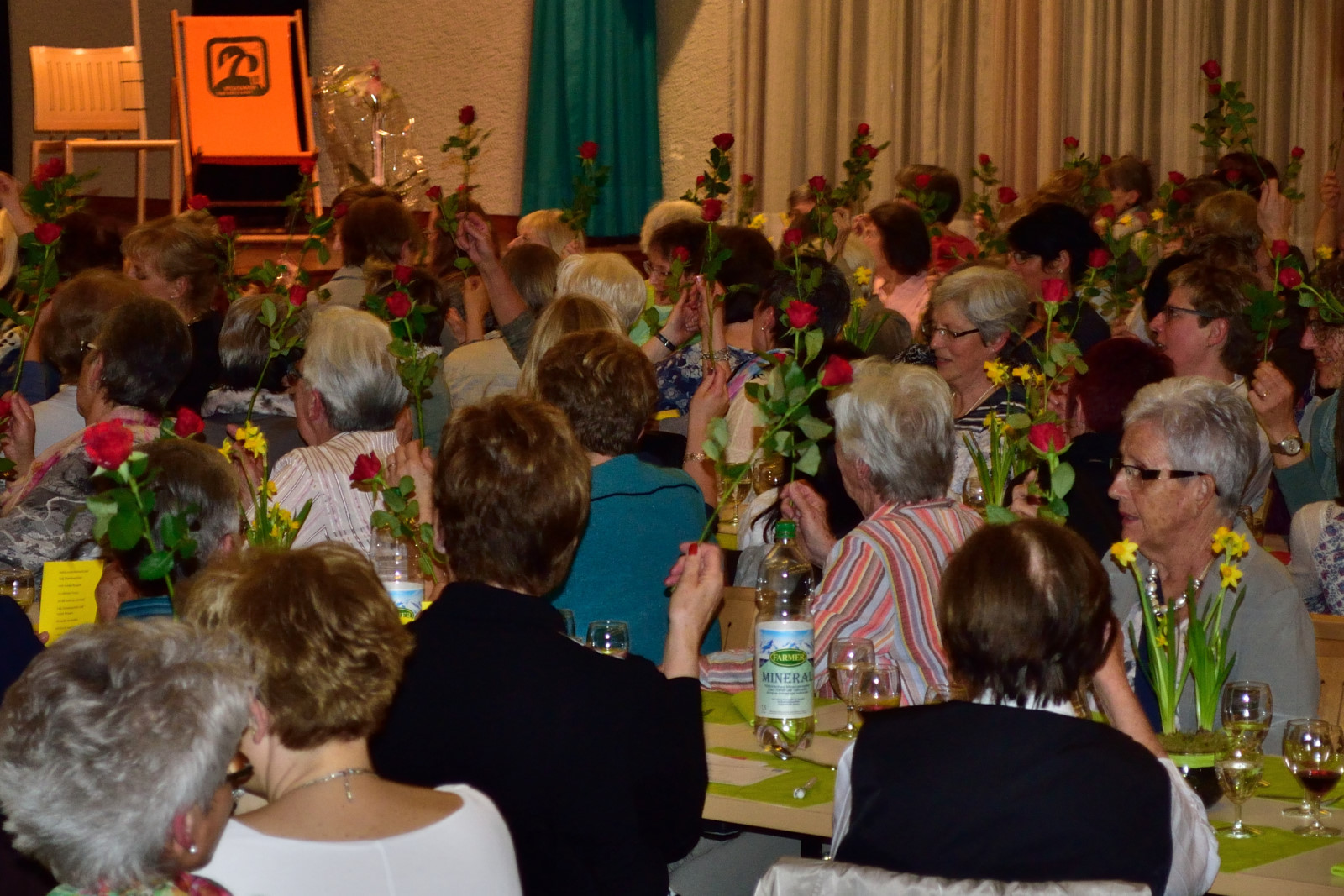 In gewohnt humorvoller Art liess die Präsidentin das Vereinsjahr Revue passieren. Nach 11 Jahren Amtszeit stellte sich die Präsidentin, Esther Schöb, nicht mehr zur Wahl. Sie blickte kurz auf die vergangenen Jahre zurück und bedankte sich bei allen Vorstandskolleginnen und Mitgliedern für die schöne Zeit. Ebenso traten die Vorstandsmitglieder Theresia Trüssel und Vreni Wick nach langjähriger Tätigkeit aus dem Vorstand zurück. Neu wurde wurde Frau Rita Christen als Präsidentin, Frau Yvette Dal Santo (Religion), Daniela Koller (Soziales) sowie Irene Appert (Kultur) gewählt. Die scheidenden Vorstandmitglieder wurden mit viel Schalk und Humor sowie einem Meer von roten Rosen in den Ruhestand verabschiedet.