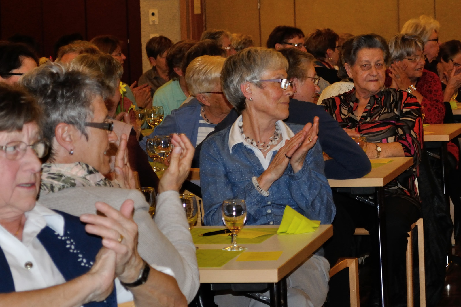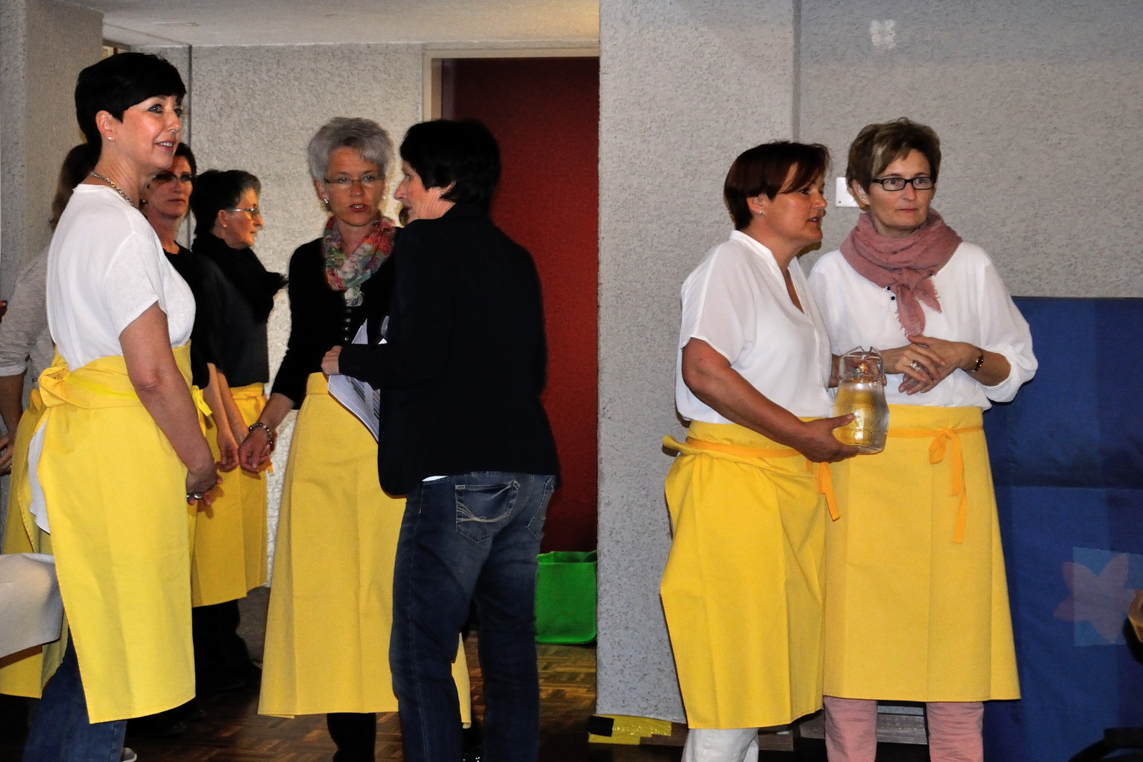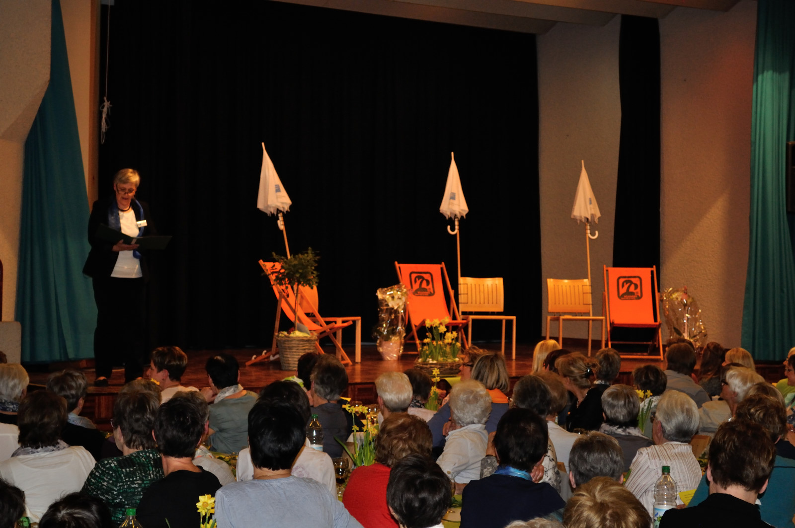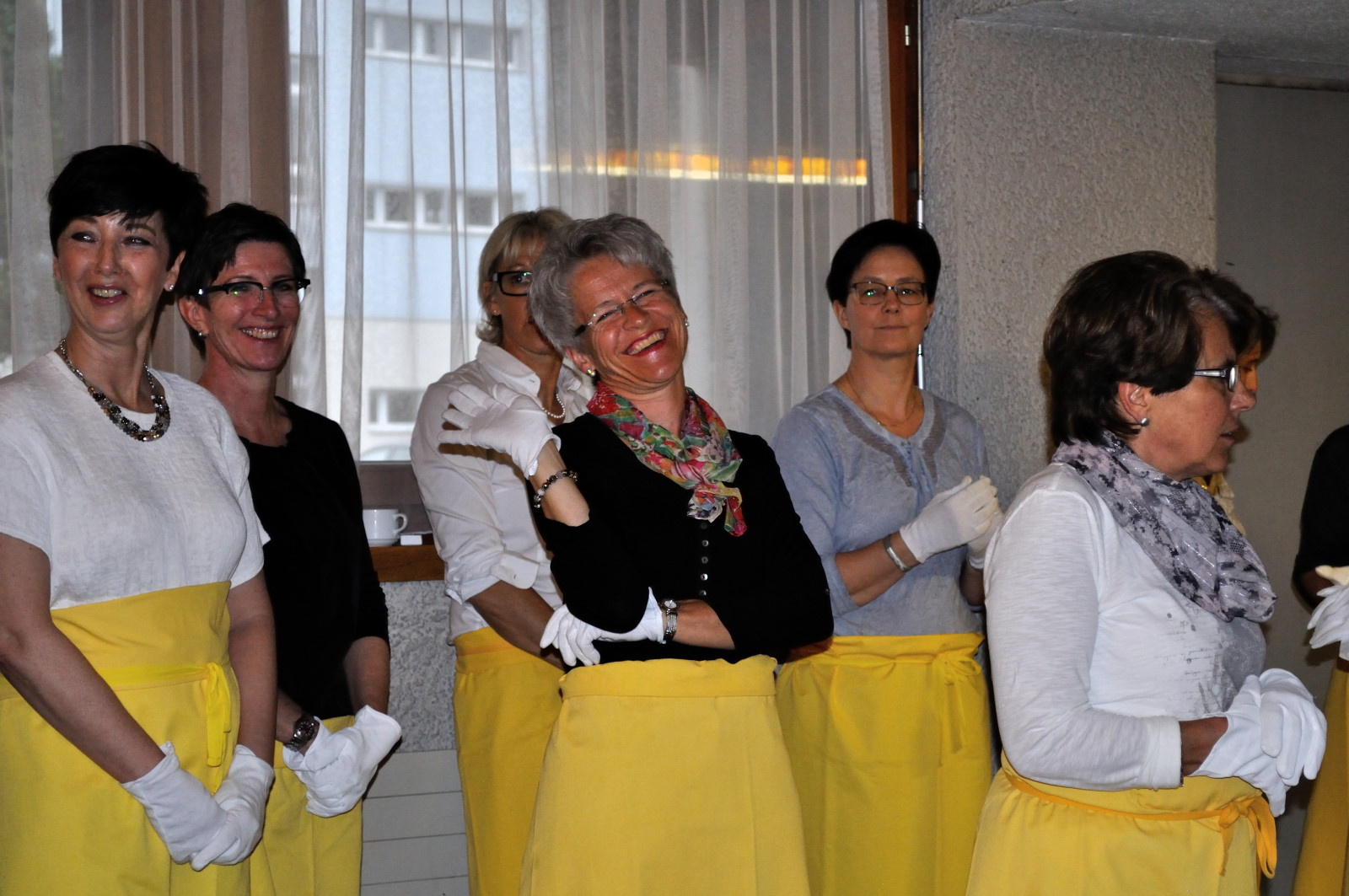In gewohnt humorvoller Art liess die Präsidentin das Vereinsjahr Revue passieren. Nach 11 Jahren Amtszeit stellte sich die Präsidentin, Esther Schöb, nicht mehr zur Wahl. Sie blickte kurz auf die vergangenen Jahre zurück und bedankte sich bei allen Vorstandskolleginnen und Mitgliedern für die schöne Zeit. Ebenso traten die Vorstandsmitglieder Theresia Trüssel und Vreni Wick nach langjähriger Tätigkeit aus dem Vorstand zurück. Neu wurde wurde Frau Rita Christen als Präsidentin, Frau Yvette Dal Santo (Religion), Daniela Koller (Soziales) sowie Irene Appert (Kultur) gewählt. Die scheidenden Vorstandmitglieder wurden mit viel Schalk und Humor sowie einem Meer von roten Rosen in den Ruhestand verabschiedet.