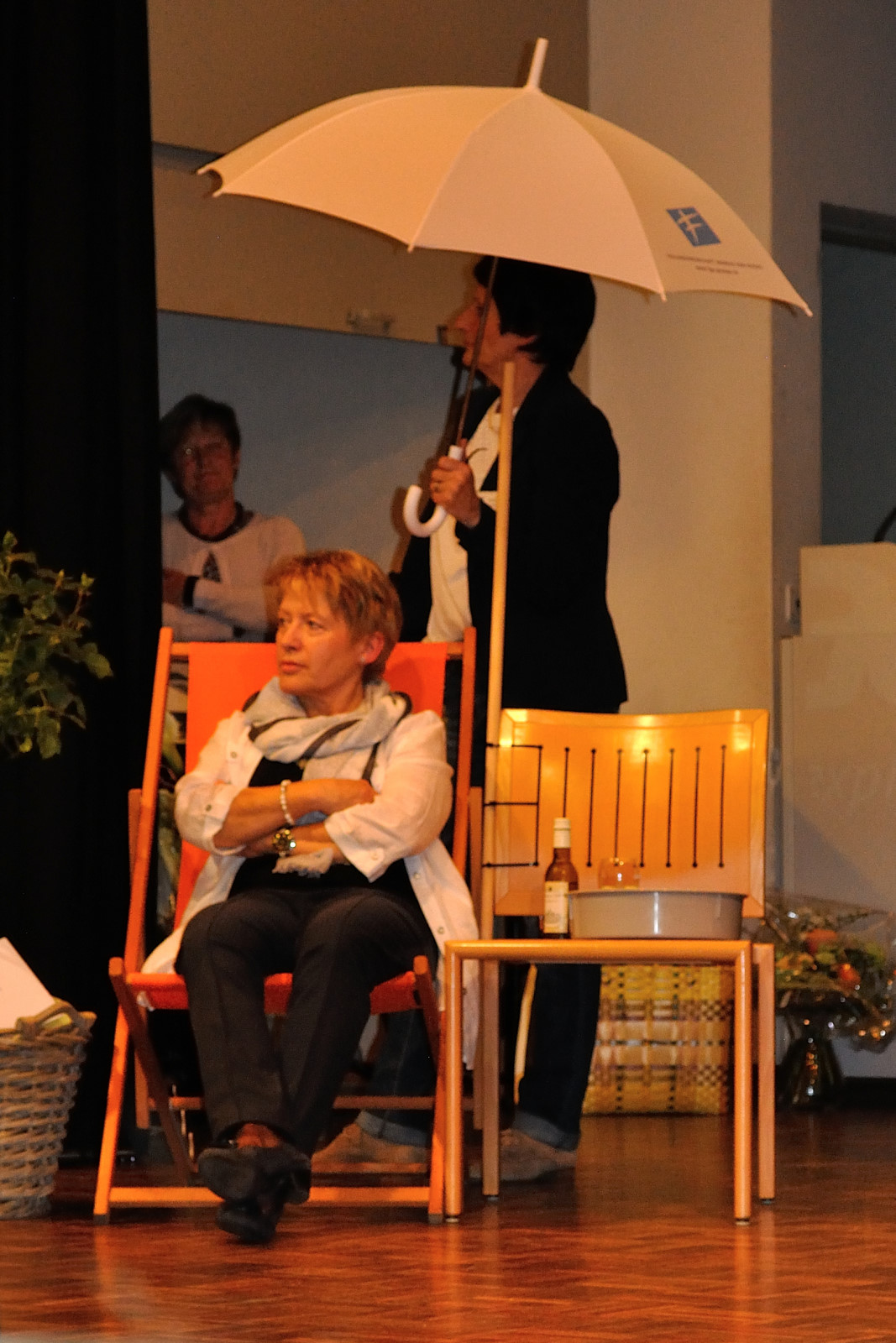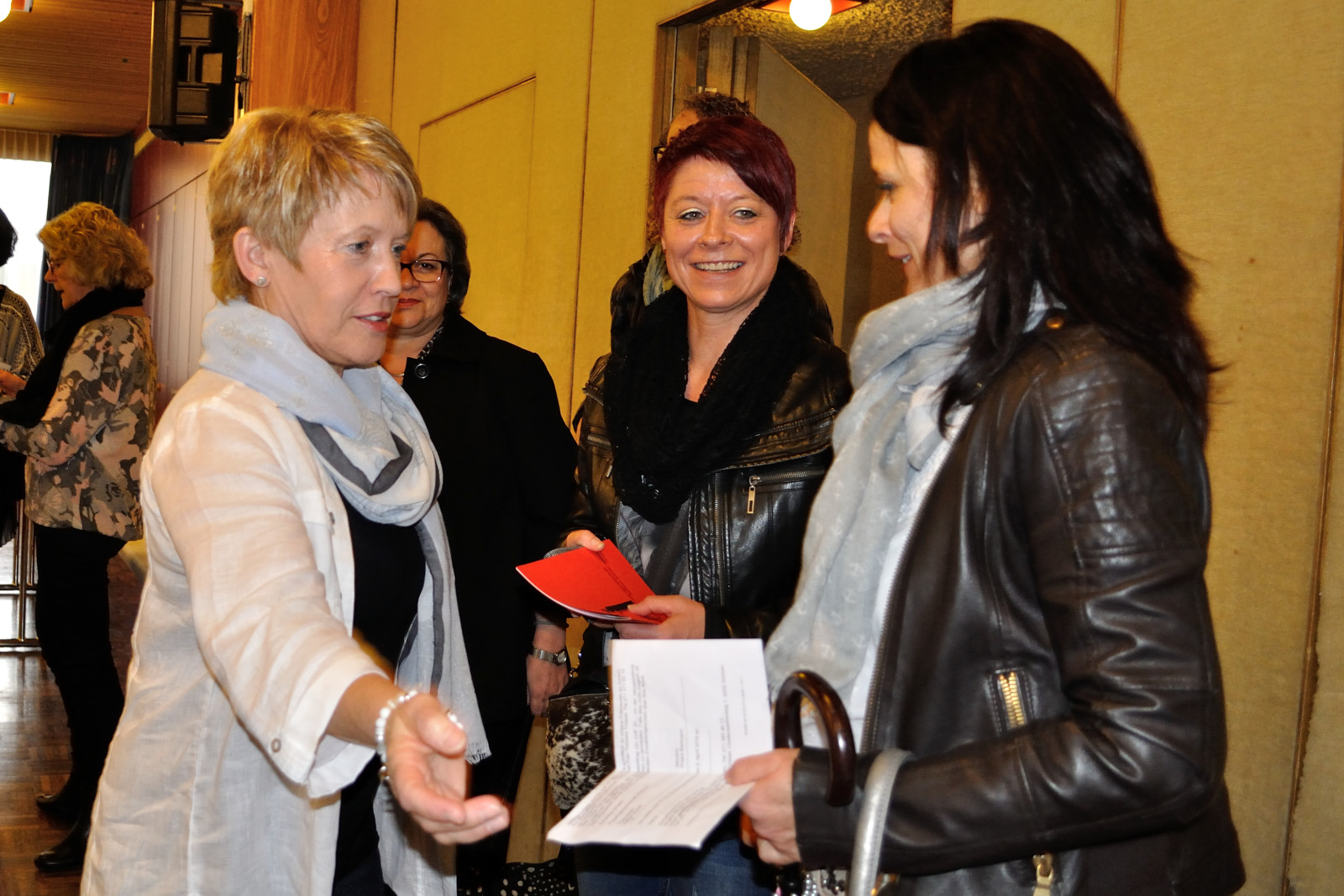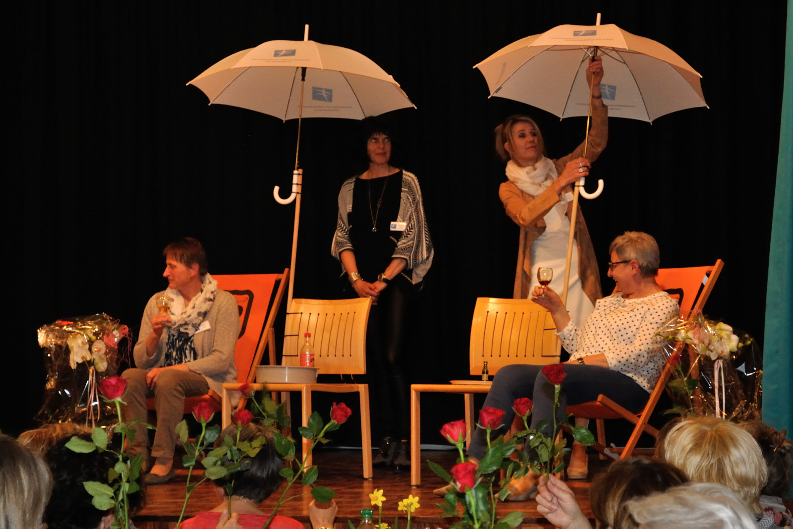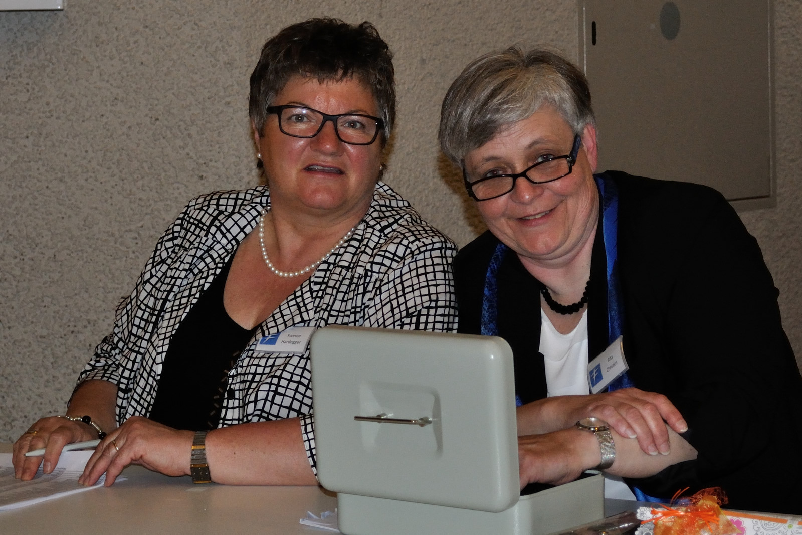 In gewohnt humorvoller Art liess die Präsidentin das Vereinsjahr Revue passieren. Nach 11 Jahren Amtszeit stellte sich die Präsidentin, Esther Schöb, nicht mehr zur Wahl. Sie blickte kurz auf die vergangenen Jahre zurück und bedankte sich bei allen Vorstandskolleginnen und Mitgliedern für die schöne Zeit. Ebenso traten die Vorstandsmitglieder Theresia Trüssel und Vreni Wick nach langjähriger Tätigkeit aus dem Vorstand zurück. Neu wurde wurde Frau Rita Christen als Präsidentin, Frau Yvette Dal Santo (Religion), Daniela Koller (Soziales) sowie Irene Appert (Kultur) gewählt. Die scheidenden Vorstandmitglieder wurden mit viel Schalk und Humor sowie einem Meer von roten Rosen in den Ruhestand verabschiedet.
