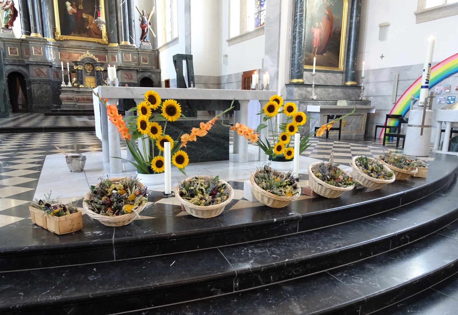 Die Vorbereitungen dafür begannen früh. Helferinnen zogen mit viel Liebe Kräuter und Blumen auf und trockneten sie nach der Ernte. Diese herrlich duftende Pracht wurde zu hübschen Sträusschen gebunden und im Gottesdienst gesegnet. Die Kirchgängerinnen und Kirchgänger freuten sich darüber, gesegnete Pflänzchen mit nach Hause nehmen zu dürfen.