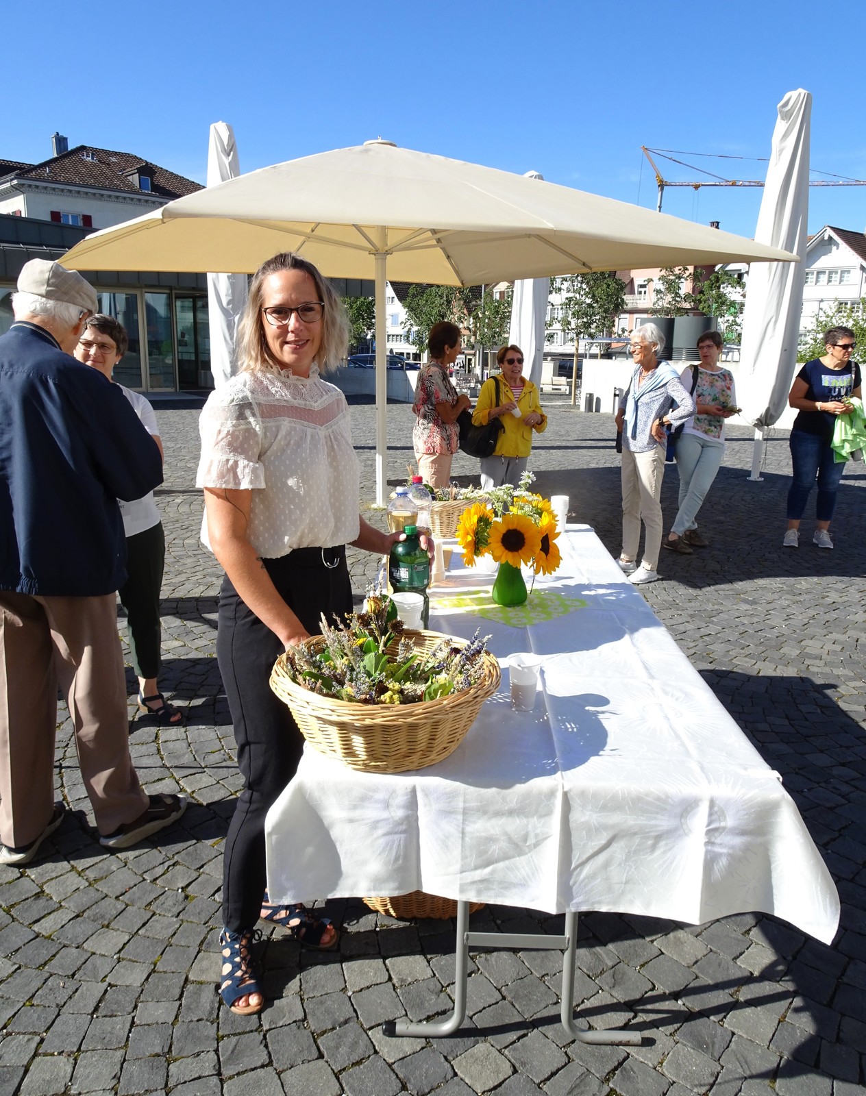 Yvette Dal Santo und ihre Liturgiegruppe luden anschliessend ein zum Kräutertee im Bibelgarten.