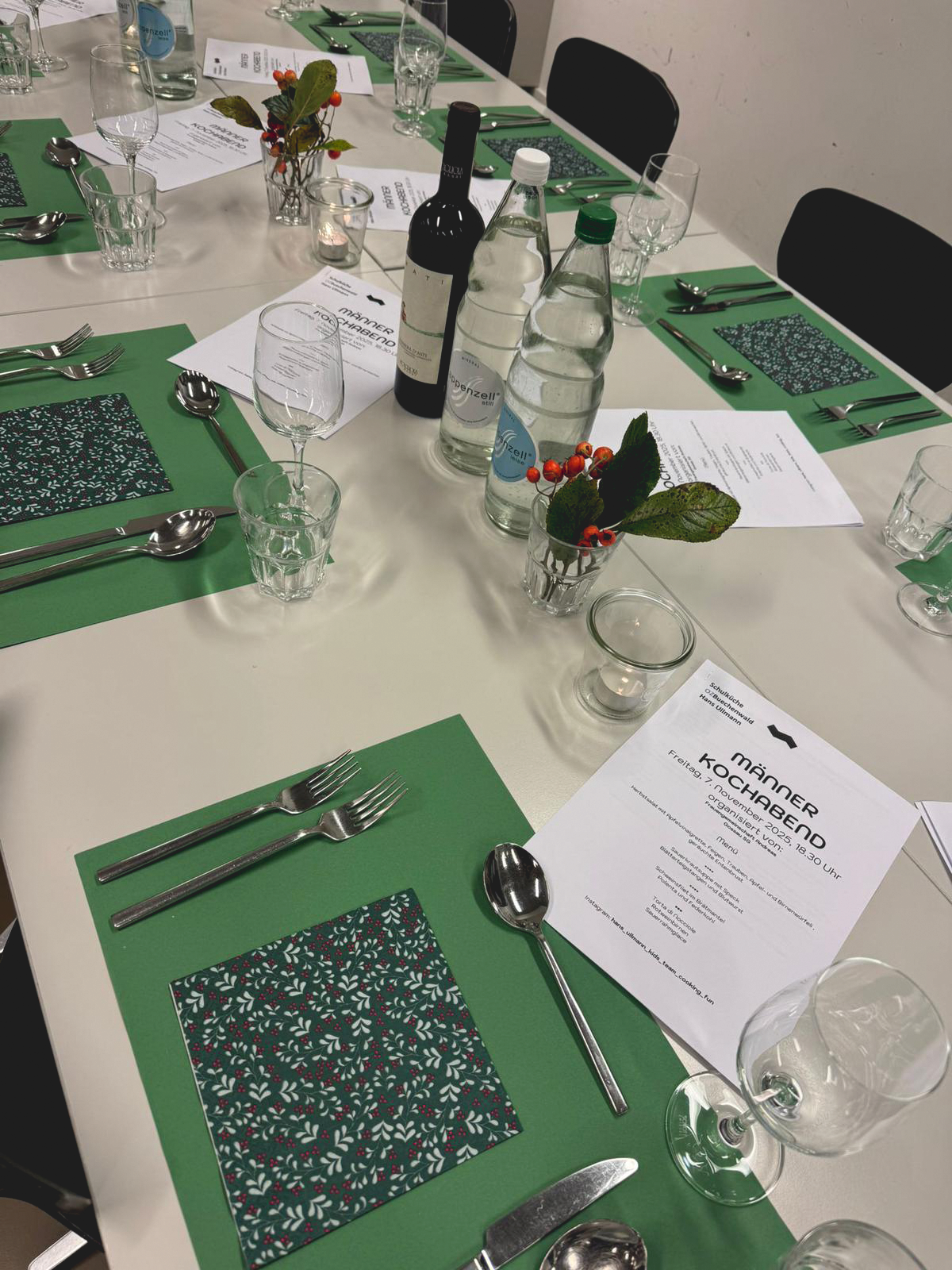 Mit 11 Männern am ersten und 14 Männern am zweiten Abend war das Gegenteil der Fall. Gemeinsam wurden feine Menüs hergestellt. Zwei gelungene und gemütliche Abende.