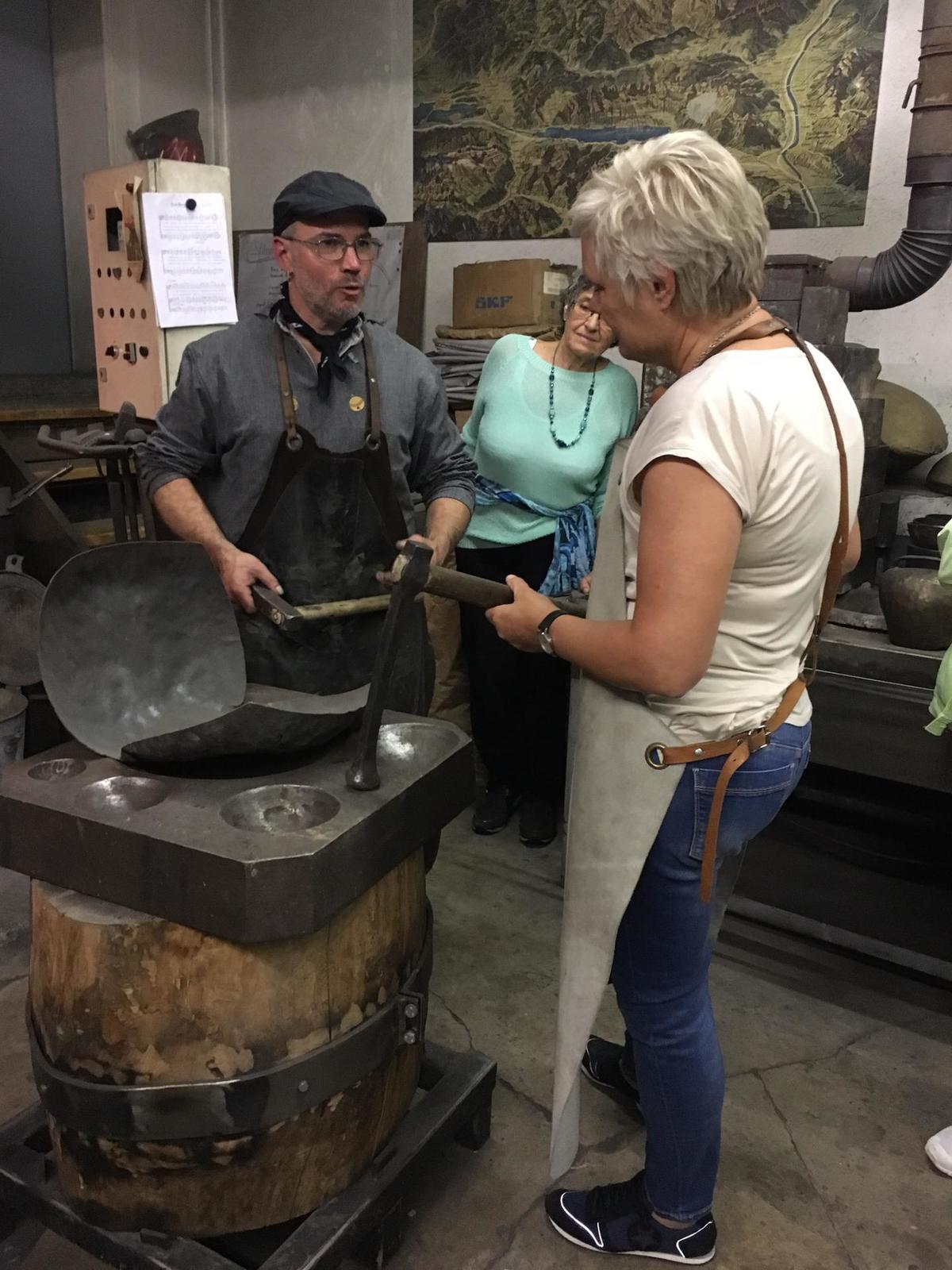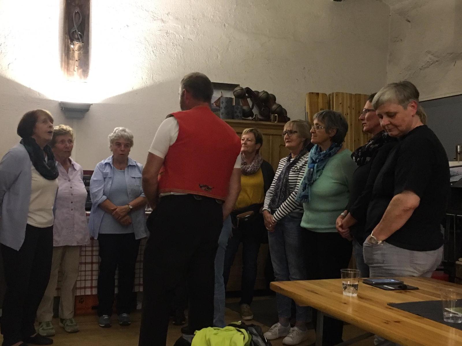 An der Schmittenführung im Marstal erklärte Herr Preisig sein Handwerk und liess die Frauen gleich selbst mit anpacken. Zudem wurde die Gruppe in die Kunst des Jodelns und Talerschwingens eingeführt. Die Besucherinnen genossen den interessanten und unterhaltsamen Abend.