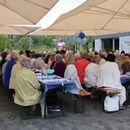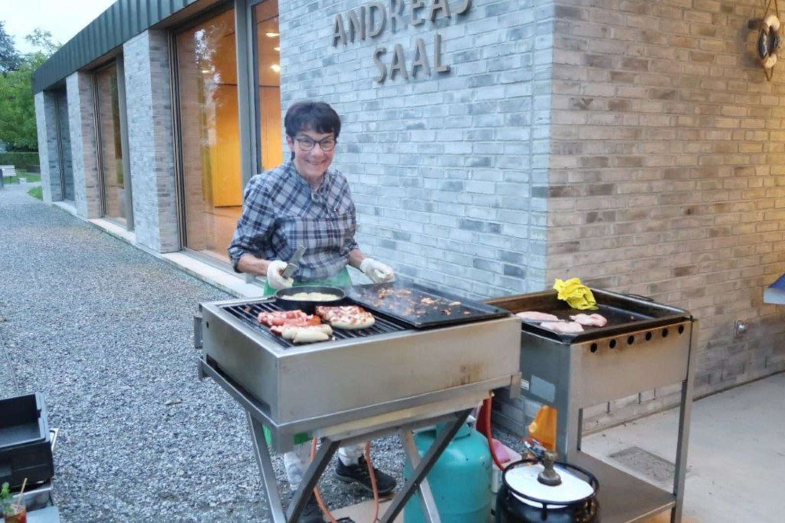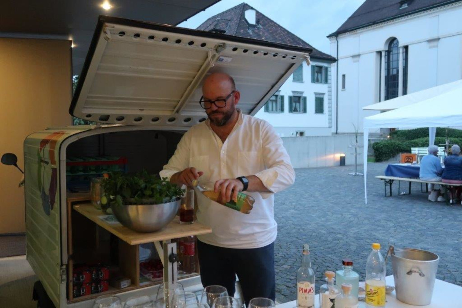 Es wurde geredet, gelacht und die Gäste genossen das Treffen. Barkeeper Andy Givel hatte alle Hände voll zu tun an seiner Piaggio-Bar. Für feines Essen vom Grill sorgte Pia Grüebler.
