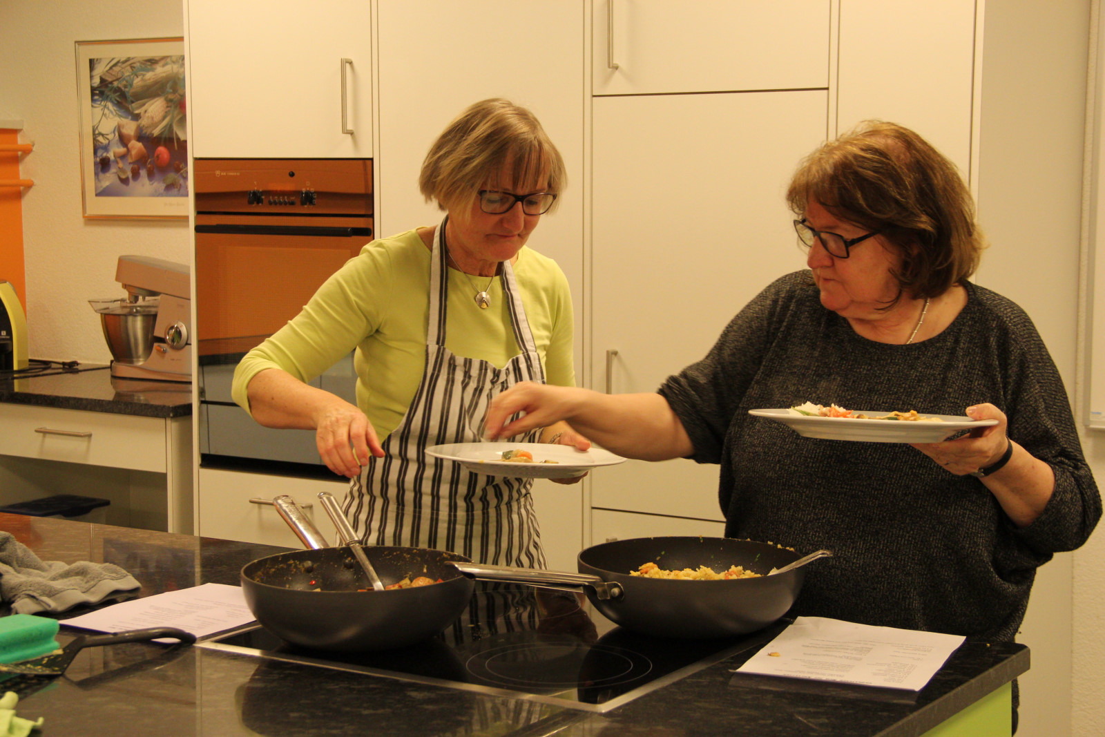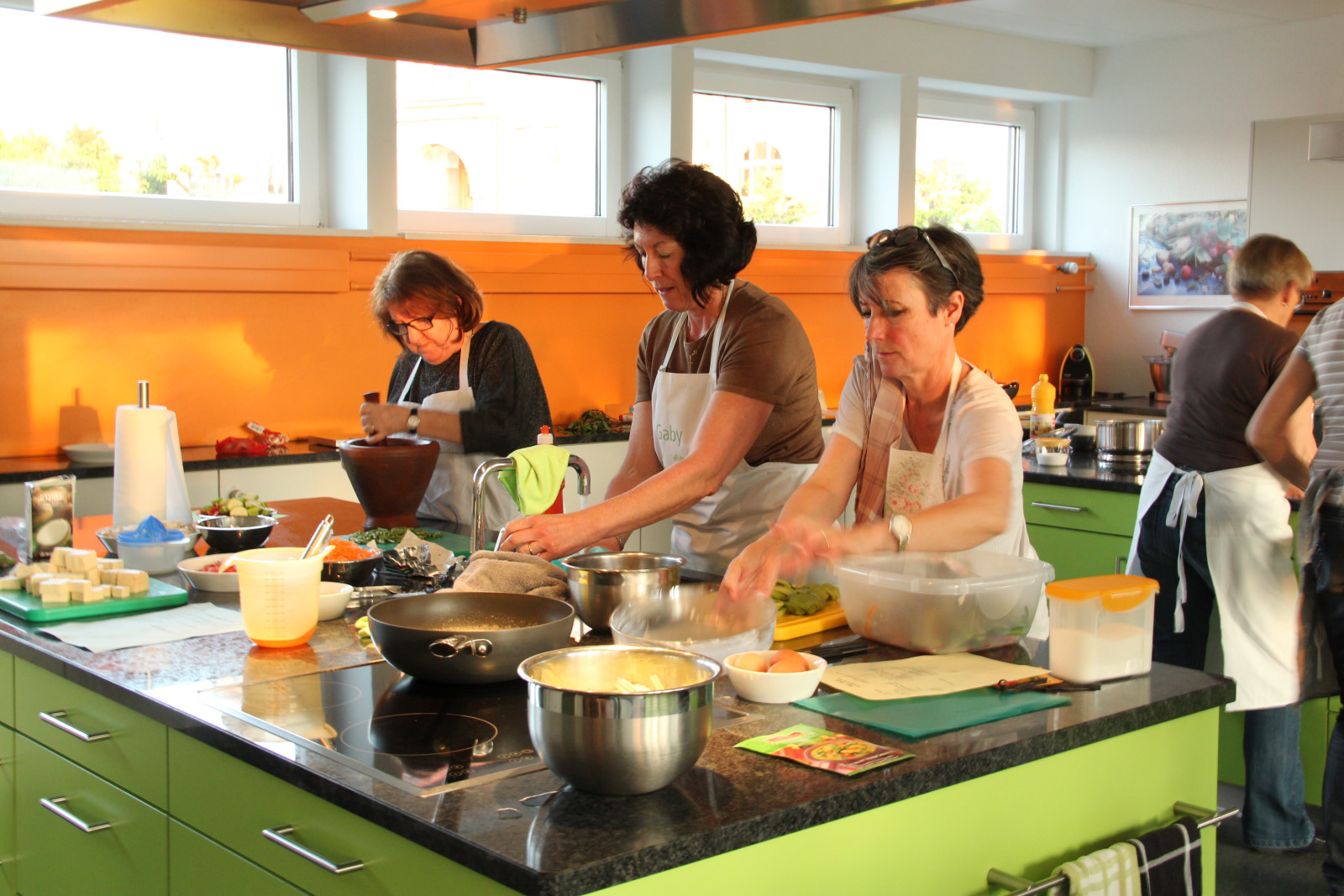 Mit Kochschürze und viel Begeisterung wurde abgewogen, probiert, verfeinert und schlussendlich genossen. Unter der Leitung von Gisela Engesser haben die Frauen viel Wissenswertes rund um die thailändische Küche kennengelernt.
