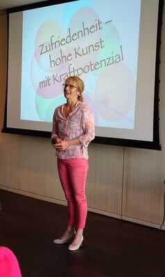 Mit ihren interessanten, aus dem Leben gegriffenen Ausführungen zog Frau Lechner die Zuhörerinnen sofort in ihren Bann. Unter Einbezug der Frauen verstand sie es, das Thema aus verschiedenen Perspektiven auszuleuchten und die wesentlichen Voraussetzungen für die Zufriedenheit hervorzuheben - Frieden mit sich selbst, Dankbarkeit, die Art wie man fokussiert und bewertet, Eigenverantwortung und die Fähigkeit trotz unerfüllter Wünsche glücklich zu leben.