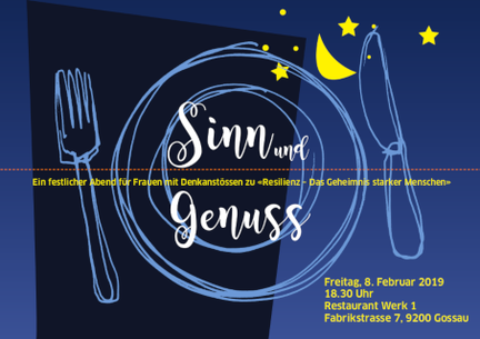 Die Frauenorganisationen aus Gossau und Umgebung laden zu einem besonderen Abend ein. Lassen Sie sich kulinarisch verwöhnen und geistig inspirieren zum Thema «Resilienz – Das Geheimnis starker Menschen». Spannende Persönlichkeiten aus Gesellschaft, Wirtschaft und Bildung werden ihre Sichtweisen formulieren und Gedankenanstösse geben.
