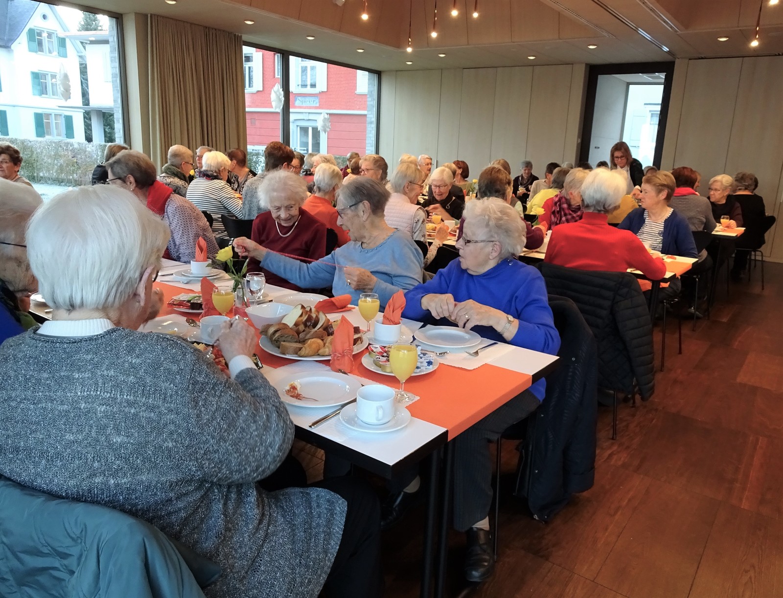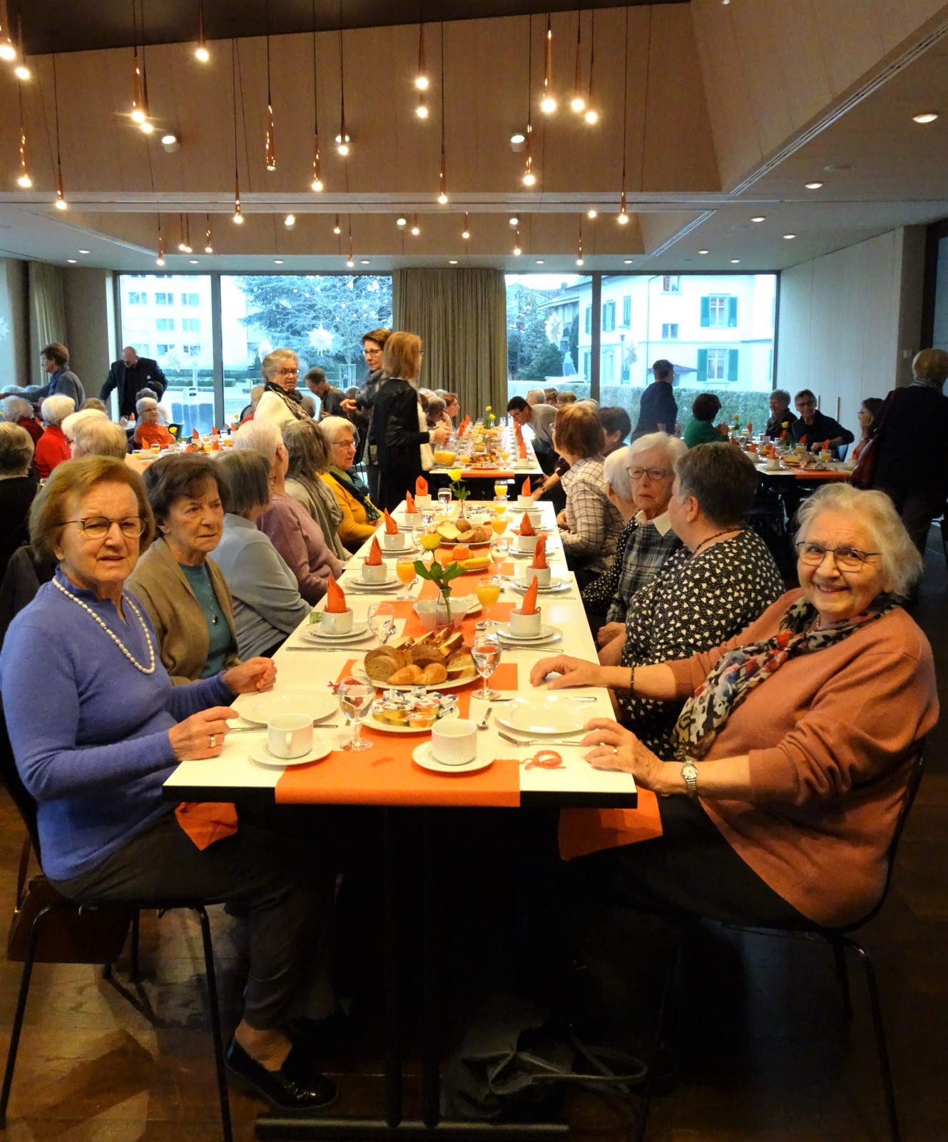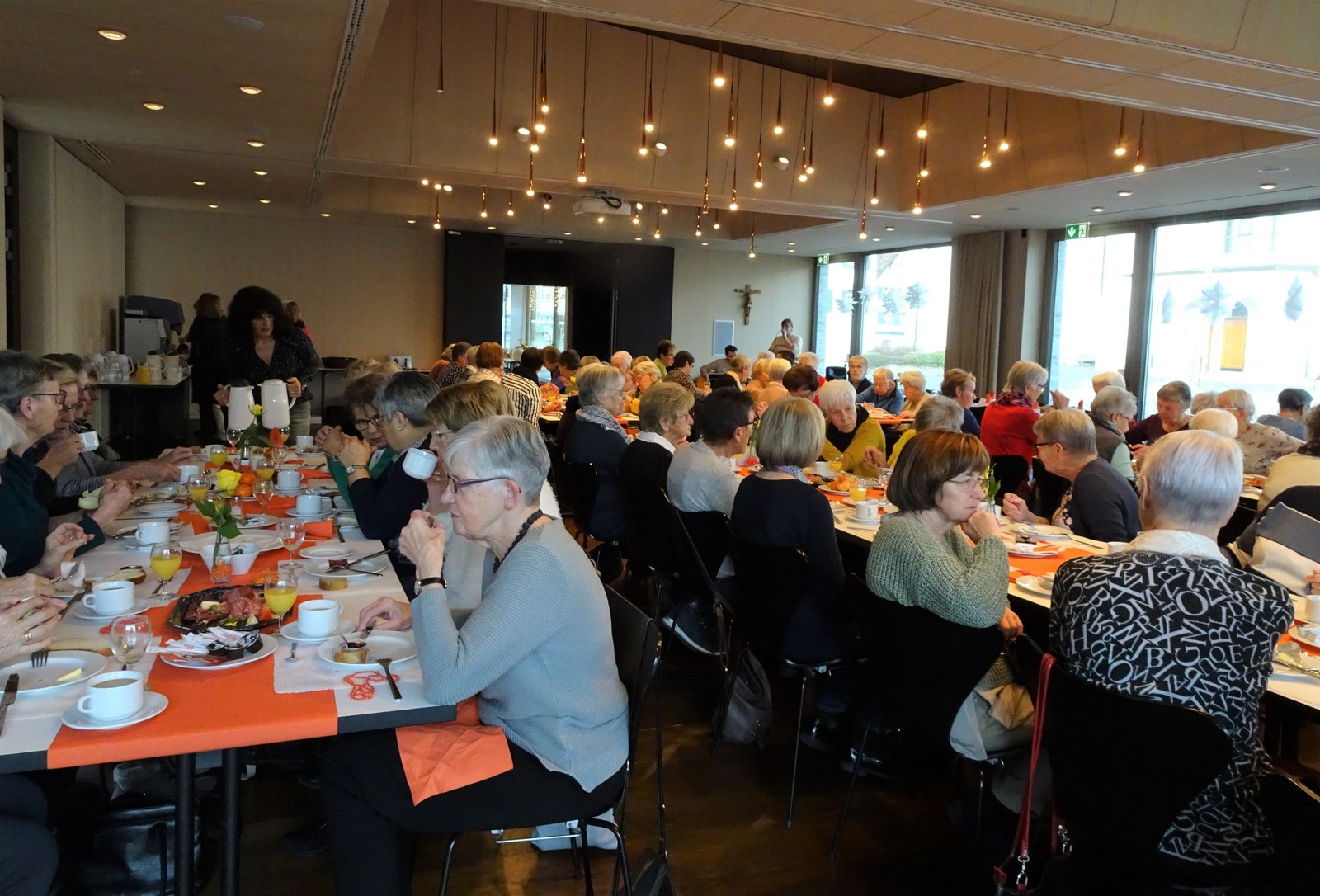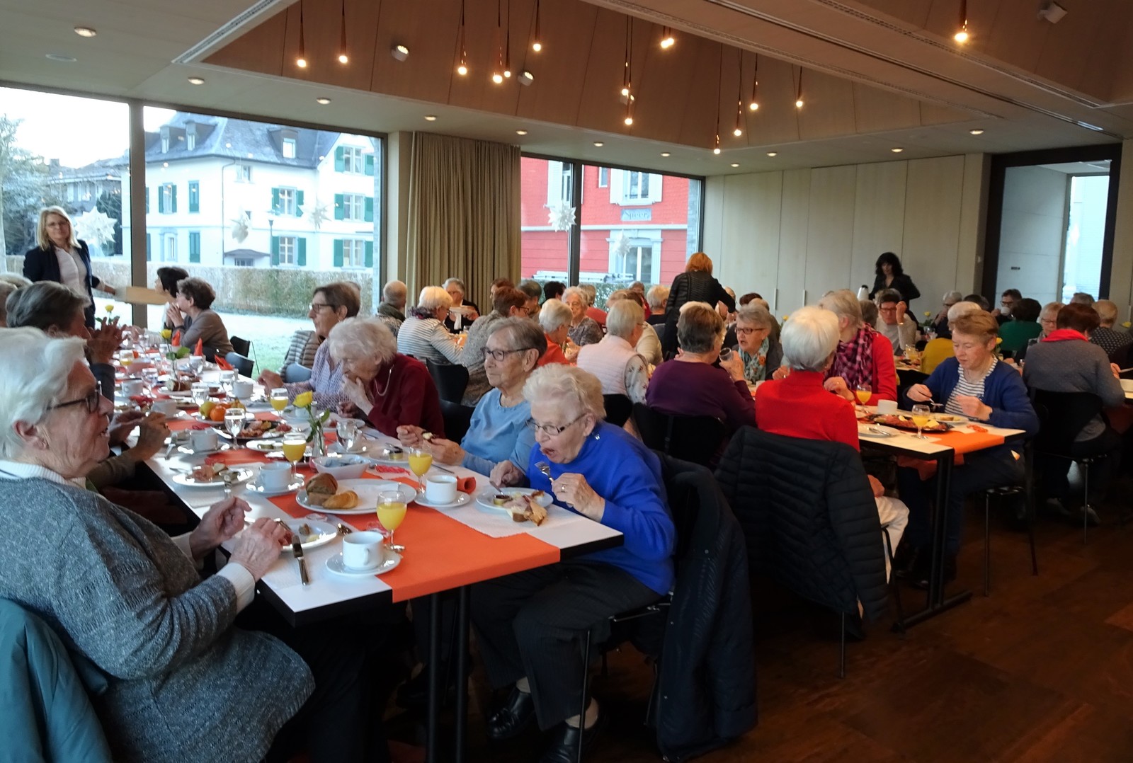 Durch die Glasfront erkannte man einen mit Liebe vorbereiteten Speisesaal. Mehr als 80 verwitwete und alleinstehende Frauen folgten der Einladung zum Frauenzmorge. Sie genossen es, sich am Jahresanfang zu treffen, sich auszutauschen und gemütlich beisammen zu sein.