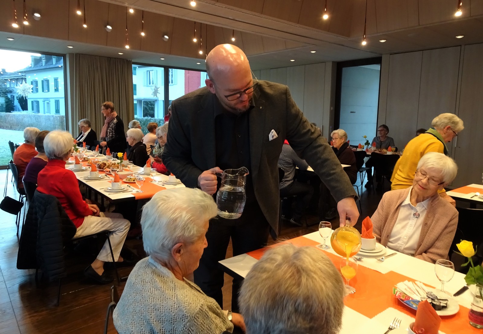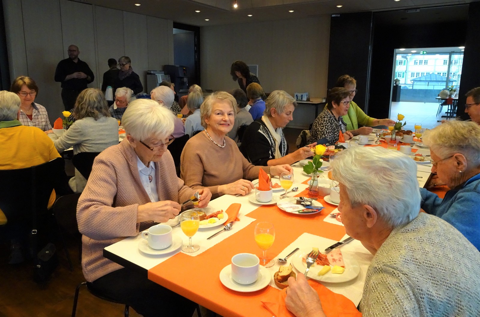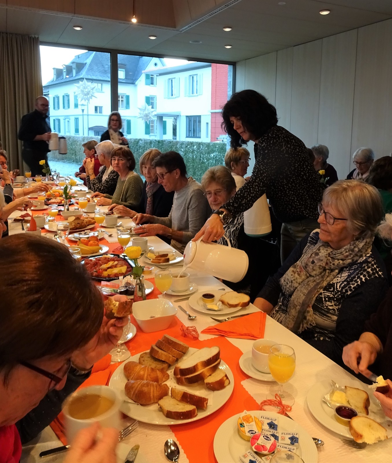 Durch die Glasfront erkannte man einen mit Liebe vorbereiteten Speisesaal. Mehr als 80 verwitwete und alleinstehende Frauen folgten der Einladung zum Frauenzmorge. Sie genossen es, sich am Jahresanfang zu treffen, sich auszutauschen und gemütlich beisammen zu sein.