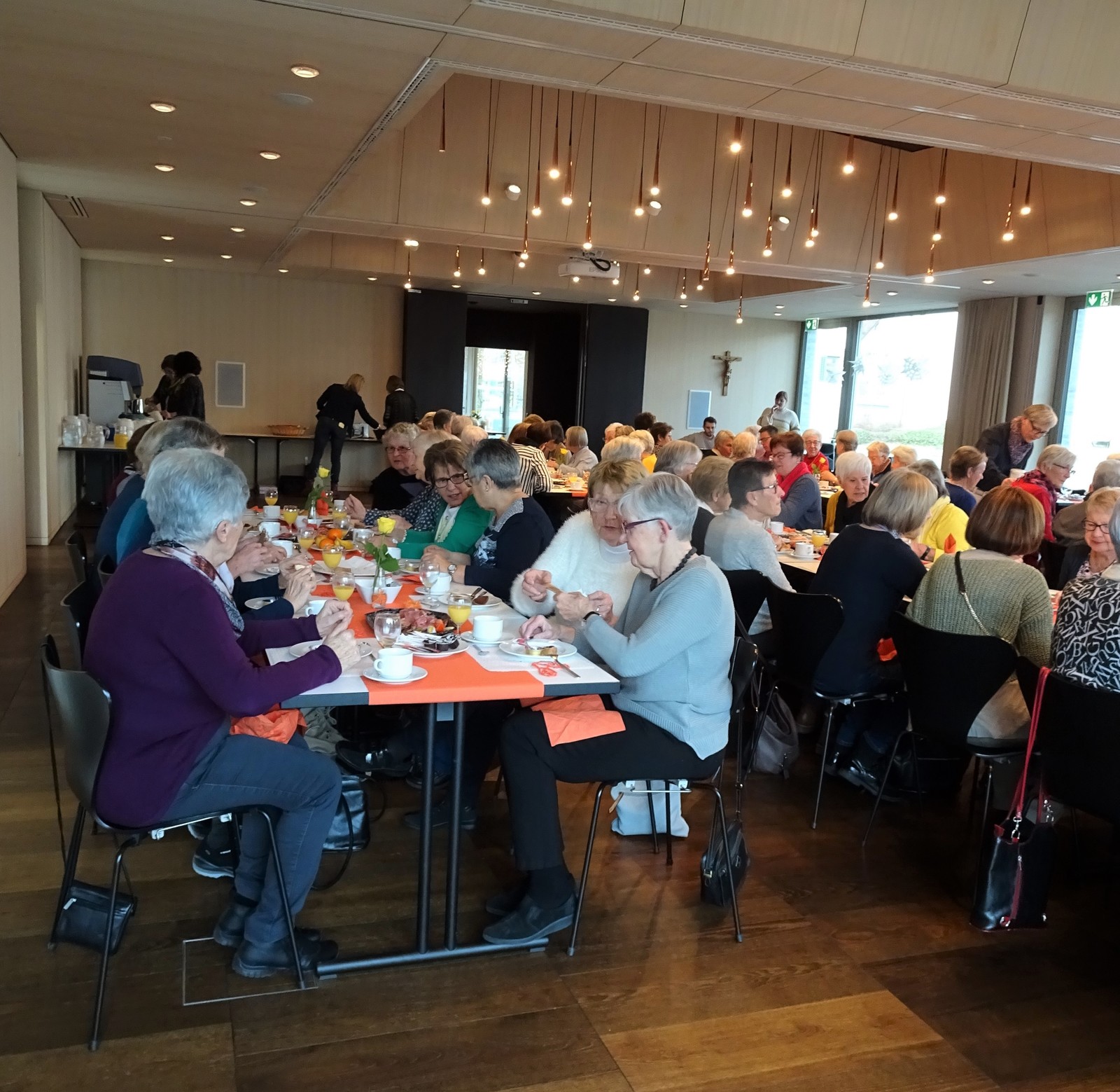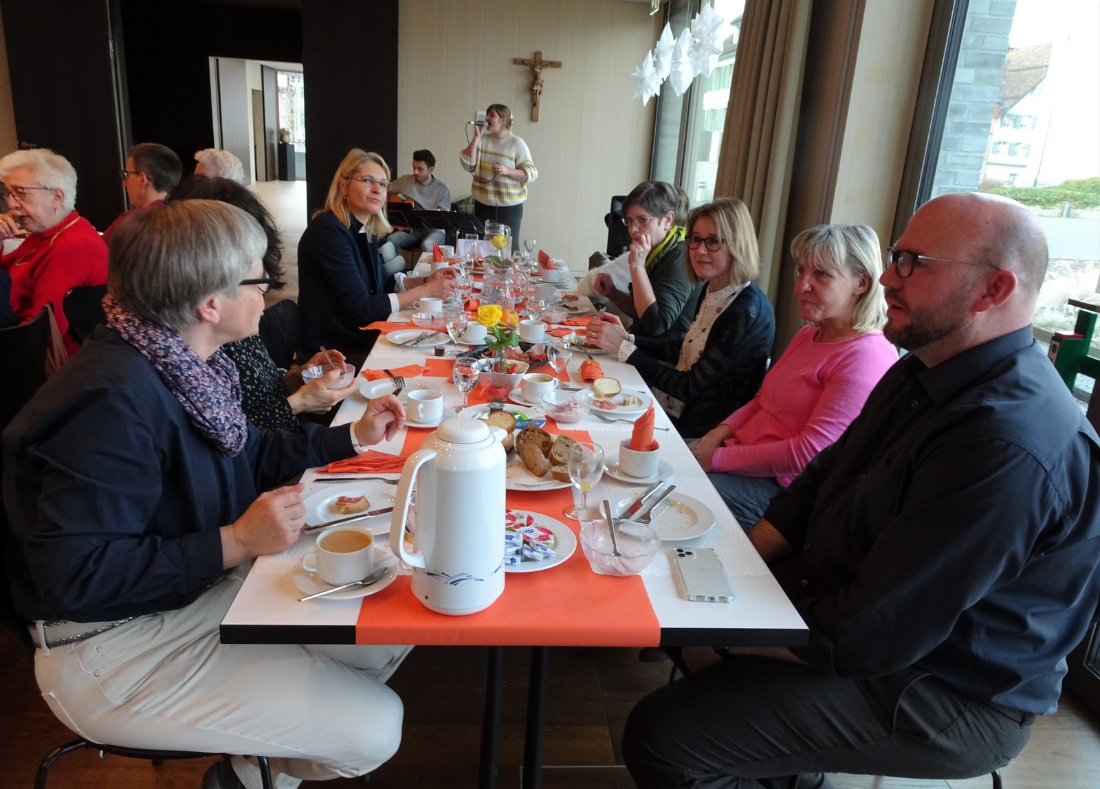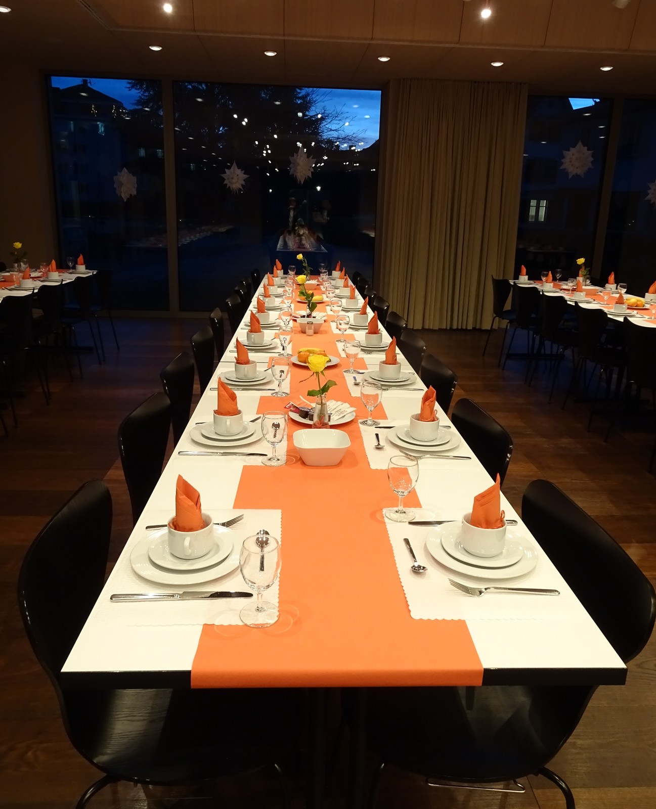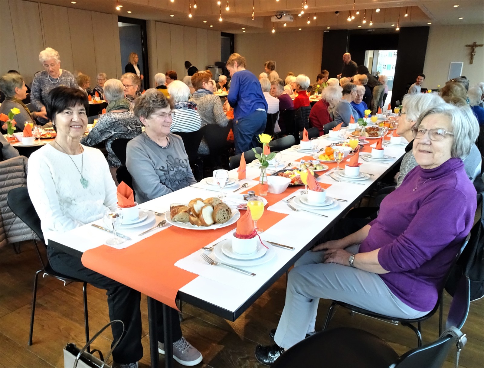 Durch die Glasfront erkannte man einen mit Liebe vorbereiteten Speisesaal. Mehr als 80 verwitwete und alleinstehende Frauen folgten der Einladung zum Frauenzmorge. Sie genossen es, sich am Jahresanfang zu treffen, sich auszutauschen und gemütlich beisammen zu sein.